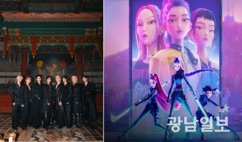 스트레이 키즈(좌)와 ‘케이팝 데몬 헌터스’(우)[JYP엔터테인먼트·넷플릭스 제공. 재판매 및 DB 금지]연합뉴스