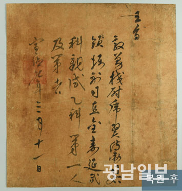 확보한 자료는 호남지역을 대표할 수 있는 자료들이 다량 포함됐다. 1434년 발급한 무과 합격증서인 ‘김수연 왕지’, 고봉 기대승과 퇴계 이황의 왕복 편지와 한시를 모은 ‘양선생문답첩’, 1600년 경 수은 강항이 기록한 포로 일기 ‘간양록’ 등이다. 불교 자료로는 1389년 무학대사가 간행한 불경사전인 ‘장승법수’와 1452년 간행돼 현재까지 같은 판본이 발견되지 않은 유일본인 ‘불정심관세음보살대다라니경’ 등이 있다.
