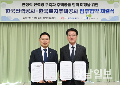 한전은 최근 서울 한전아트센터에서 LH와 ‘안정적 전력망 구축과 주택공급 정책 이행’을 위한 업무협약을 체결했다고 5일 밝혔다.