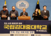 더불어민주당 김문수·신정훈·김원이·조계원 의원이 9일 국회 소통관에서 목포대·순천대 통합대학 명칭 ‘국립김대중대학교’ 추천 기자회견을 하고 있다.
