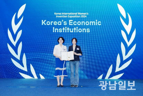 세계여성발명엑스포에서 금상을 수상한 에코잇 조인성 대표가 기념촬영을 하고 있다.