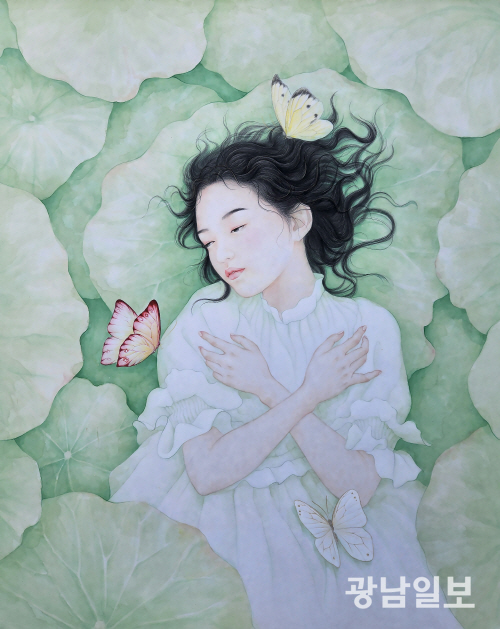 영남과 호남의 회화를 숙지하고 있는 고미아 작가의 제5회 개인전이 지난 5일 개막, 오는 31일까지 광주예술의전당(이하 광주예당) 전시지원 공모전시의 하나로 전당 내 갤러리에서 ‘호접몽’(胡蝶夢)이라는 주제로 열리고 있다. 고미아 작가는 영남대와 동 대학원에서 서양화를 전공하고 조선대 대학원에서 한국화 전공 박사과정을 수료했다. 개인전 역시 경상도와 전라도를 오가며 열었다.