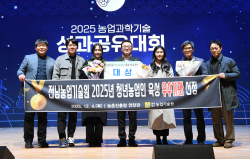 전남도농업기술원이 농촌진흥청이 주관한 ‘2025년 농업과학기술 성과공유대회’에서 청년농업인 육성 분야 대상을 수상했다.