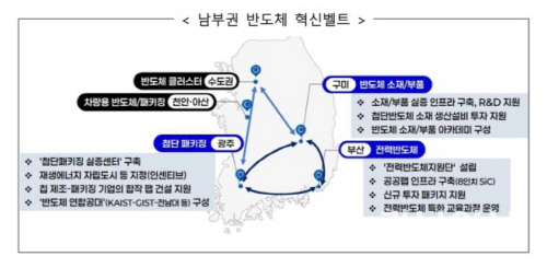 정부는 수도권에 집중된 반도체 산업 인프라 비수도권 확산을 위해 광주와 부산·경북 구미를 잇는 ‘남부권 반도체 혁신벨트’를 조성하기로 했다.