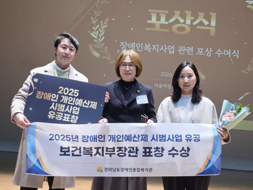 전남도장애인종합복지관(관장 김영숙)은 ‘2025년 장애인 개인예산제 시범사업’ 운영 성과를 인정받아 보건복지부 장관 표창을 수상했다고 11일 밝혔다.