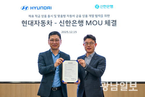 현대차는 김승찬 국내사업본부장과 신한은행 장호식 CIB그룹장 등이 참석한 가운데 ‘자동차 금융 상품 개발을 위한 업무협약(MOU)’을 체결했다고 16일 밝혔다.