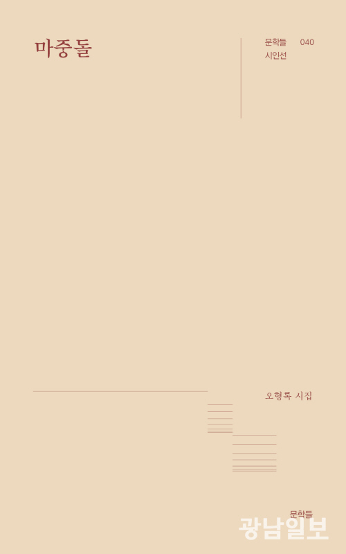 전남 해남에 머물며 꾸준하게 창작 활동을 펼쳐온 농부시인 오형록씨가 농촌 정서를 바탕으로 해 펴낸 시집 ‘마중돌’(문학들 刊)이 그것으로 문학들 시인선 40번째 권으로 나왔다. 이번 시집은 깊은 샘물을 마중하는 길잡이 역할을 하는 물인 마중물의 의미를 상기했듯 시집에 수록된 시편들이 자신의 문학 인생에서 마중물이 되기를 바라는 염원을 담아냈다.