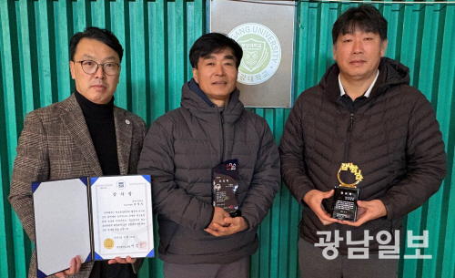 동강대 스포츠재활트레이닝과 교수들이 외부 기관 표창으로 학과를 빛내고 있다. 왼쪽부터 김명식·노재성·서정훈 교수.