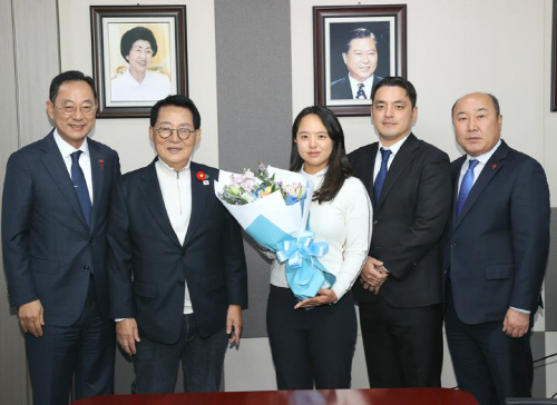 18일 해남군에 따르면 전날 국회의원회관에서 열린 성금 기탁식에는 김세영 선수와 BMW 공식 딜러사 도이치모터스 권혁민 부회장, 명현관 해남군수, 박지원 국회의원, 이성옥 해남군의회 의장이 참석했다.