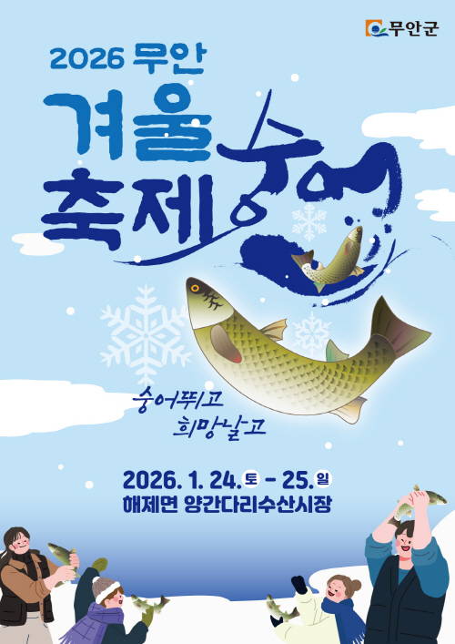 무안군은 겨울철 최고의 별미로 꼽히는 숭어를 소재로 내년 1월 24일부터 25일까지 해제면 주민다목적센터와 양간다리 수산시장에서‘2026 무안겨울숭어축제’를 개최한다.