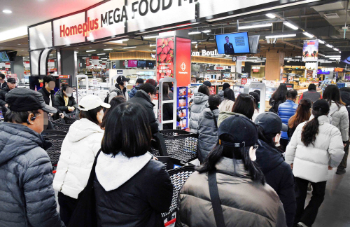 ‘윈터 홈플런’ 첫 날인 18일, ‘홈플러스 메가 푸드 마켓 라이브’ 강서점을 찾은 고객들이 입장하는 모습