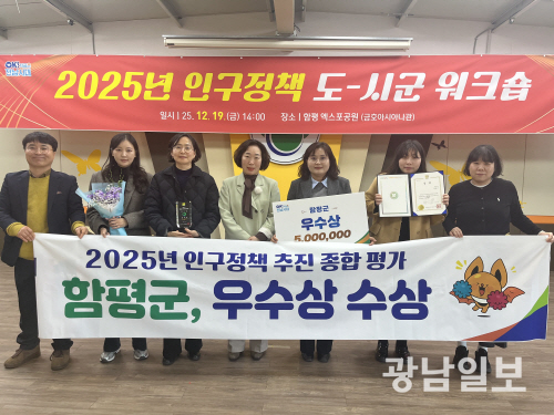 전남도가 최근 함평엑스포공원 금호아시아나관에서 개최한 ‘2025년 인구정책 종합평가’에서 함평군이 우수상을 수상했다.