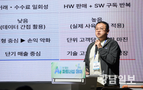 2025 AI 파트너십데이에 참가한 전광명 대표가 엣지팜에 대해 설명하고 있는 모습.