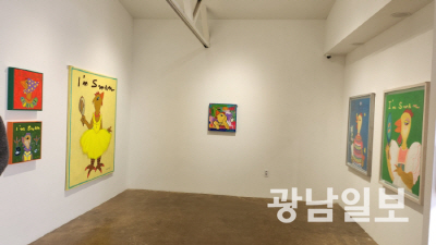 주제 ‘암탉의 비밀’에서 암탉은 어디에서 연유된 것일까. 전시장에는 유난히 닭이 들어간 작품들이 많다. 이렇게 많은 닭들이 등장한데는 그간의 삶의 발자취에서 기인한다. 전남 화순 소재 전원주택에서 10년 정도 거주했는데 닭을 키웠다고 한다. 그때 그는 피상적으로만 알던 닭에 대해 제대로 공부하고 이해할 수 있었던 기회가 됐던 모양이다. 나중에 애완견이나 애완묘 같은 존재와 같았던 듯 싶다. 누구에게나 비밀은 있고, 그 비밀은 숨기고 싶은 이야기이기도 하지만 욕망이라는 형태로 표현된다는 설명이다. 작가는 일상에서 마주하는 잘못된 고정관념과 편견들, 욕심과 이기심으로 붉게 멍든 오해와 상처들을 닭의 유쾌한 에피소드로 풀어내고 있다. 닭 이번 전시에는 닭에 대한 새로운 해석과 서사까지 우리들의 일상에 빗대 작가만의 옹골찬 회화세계를 접하는데 부족함이 없다.