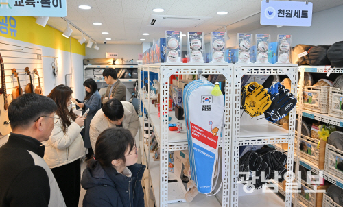 22일 광주 서구 화정4동 월광교회에서 열린 ‘서구 물품공유센터 5호점 개소식’에 참석한 주민들이 저렴한 비용으로 대여할 수 있는 천원 기획세트, 공연·교육· 놀이 물품 등 다양한 생활용품을 살펴보고 있다. 광주 서구는 화정2동 행정복지센터(1호점),동천동 행정복지센터(2호점),농성1동 서로이음센터(3호점),서창동 상무역골드클래스 상가(4호점)에서 공유센터를 운영하고 있으며 주민 생활에 필요한 물품을 저렴하게 공유해 자원 절약과 생활비 부담 완화, 공유문화 확산 등에 기여하고 있다.