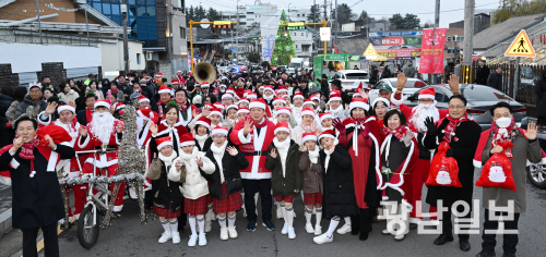 성탄절을 하루 앞둔 24일 오후 광주 남구 양림동 펭귄마을 일원에서 열린 2025‘양림&크리스마스 문화축제’에 참석한 김병내 남구청장과 주민들이 산타, 루돌프등 다양한 복장을 하고 크리스마스 퍼레이드 축제를 즐기고 있다. 광주 대표 겨울 축제인 ‘양림&크리스마스 축제’는 축하공연,거리퍼레이드,체험 및 다양한 문화공연 등 이 펼쳐진다,