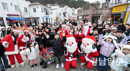크리스마스(성탄절)휴일을 맞아 25일 담양 메타프로방스 산타축제장을 찾은 관광객들이 메리크리스마스를 외치며 즐거워하고 있다. ‘우린 누군가의 산타’를 주제로 열린 ‘제7회 담양 산타축제’는 담양의 겨울 대표 축제로 거리 행진과 점등 퍼포먼스, 불꽃놀이 등으로 크리스마스 분위기를 더했다. 한편 축제 기간 초대가수와 지역 예술인들의 공연, LED 조명등 만들기와 키링 만들기 등 체험 프로그램도 운영됐다.