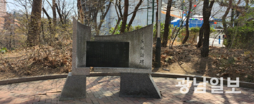 교내에 자리잡은 신경림 시인 시비.