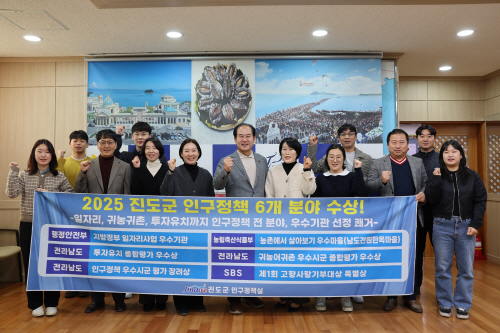 진도군이 올 한 해 동안 인구정책 6개 분야에서 잇따라 우수기관으로 선정되며, 인구정책 추진 성과를 대외적으로 인정받았다.