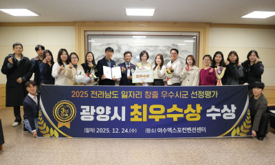 시 관계자는 “이번 수상은 산업위기 속에서도 시민과 기업, 행정이 함께 힘을 모아 이뤄낸 값진 성과다”며 “광양시는 청년이 머물고 기업이 성장할 수 있는 지속 가능한 일자리 정책으로 지역 경제에 활력을 불어넣고, 시민 모두가 체감할 수 있는 고용 안정을 실현해 나가겠다”고 말했다.