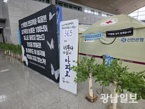 ‘179명의 안타까운 죽음, 유가족의 눈물은 100년이 지나도 마르지 않는다’, ‘왜 아무도 이 비극에 책임지지 않는가’, ‘365일째 너무나 가슴이 아파요’라는 문구는 1년이 흘러도 가시지 않은 상처를 고스란히 드러냈다.