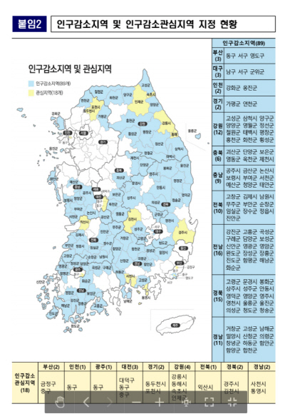 이에 정부는 사회적 논의와 관련 시행령 개정을 통해 인구감소관심지역 지정과 지원 등에 관한 법적 근거를 마련했다.