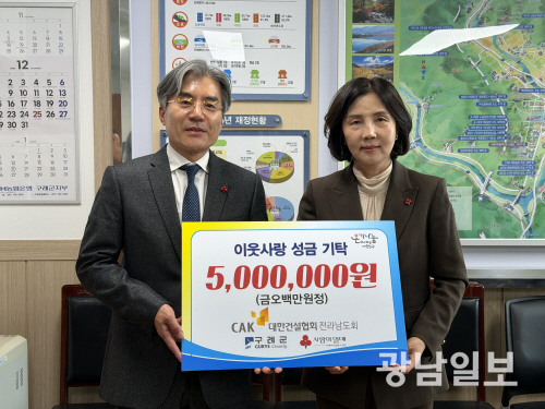오수미 부군수는 “연말연시를 맞아 따뜻한 나눔을 실천해주신 대한건설협회 전남도회에 깊이 감사를 드린다”며 “기탁해주신 성금은 꼭 필요한 곳에 소중히 전달하겠다”고 말했다.