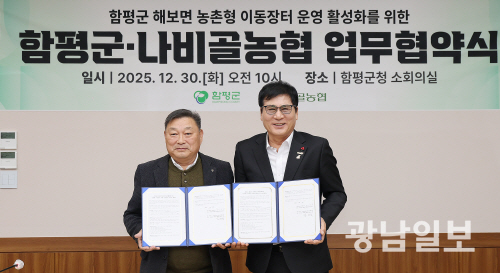6일 함평군에 따르면 최근 청사 소회의실에서 나비골농협과 ‘해보면 찾아가는 농촌형 이동장터 운영관리 위수탁 협약’을 체결했다.