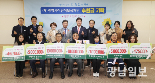 광양 지역 8개 기업·단체는 최근 아이들의 성장과 보육환경 개선을 위해 3253만원의 후원금을 광양시어린이보육재단에 기탁했다.