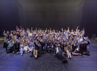정희연씨가 공연을 마친 동신대 공연예술학부 학생들과 기념사진을 찍고 있다.