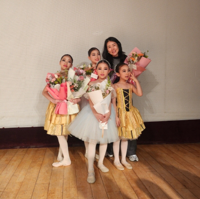 정희연씨가 무용발표회를 마친 제자들과 기념사진을 찍고 있다.