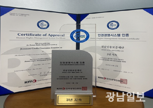 전남신용보증재단은 3년 연속 인권경영시스템 인증을 받았다.