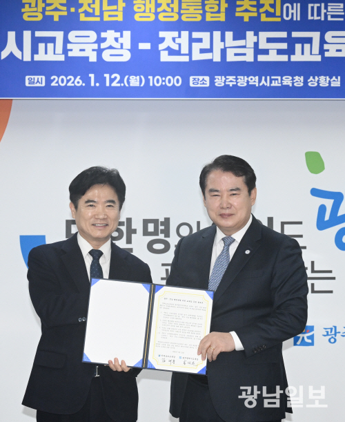 13일 지역 교육계에 따르면 광주·전남 시도교육청은 최근 행정통합 추진과 연계해 교육통합 논의에 착수했다. 양 교육청은 행정통합이 이뤄질 경우 단일 통합 교육감 체제로 전환해야 한다는 원칙에 공감대를 형성하고, 통합추진단을 구성해 선출 시기와 권한 구조 등 세부 논의를 시작했다.