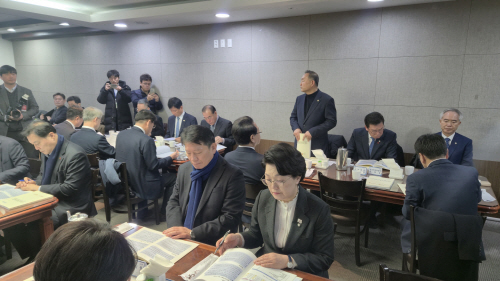 강기정 광주시장이 15일 국회의원회관에서 ‘광주·전남 행정통합 추진을 위한 지역 국회의원 조찬 간담회’에 참석해 특별법 제정과 관련한 주요 내용을 논의하고 있다. 사진