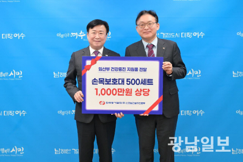 여수시는 지난 14일 한국동서발전(주) 신호남건설추진본부가 지역사회 공헌활동의 일환으로 임산부 지원을 위해 1000만원 상당의 임산부용 손목보호대 500개를 기부했다.