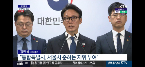 김 총리는 “단순히 조직의 규모만 커지는 통합을 넘어 통합 특별시장이 확대된 권한을 바탕으로 복잡한 행정 수요에 더 잘 대응하는 능력 있고 일 잘하는 지방정부를 만들기 위한 것”이라고 강조했다.