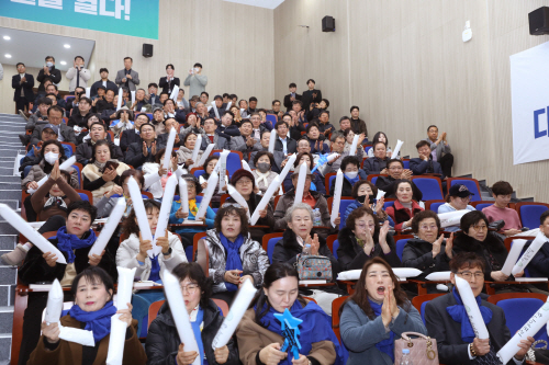 18일 한국에너지공과대학에서 열린 김영록 전남도지사의 북콘서트에 김영록 지사의 팬클럽이 참석해 응원을 펼치고 있다.