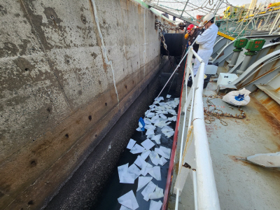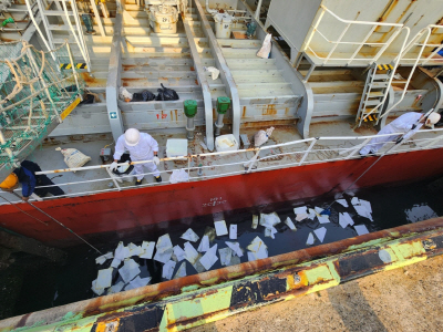 19일 여수해양경찰에 따르면 여수 사포1부두에서 적재 화물 하역 작업 중이던 A호(4688t)가 오염물질의 배출금지 등 위반 혐의로 적발됐다.
