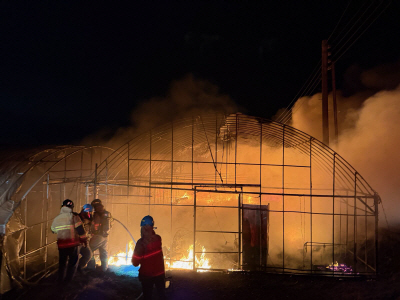 소방당국은 장비 9대, 대원 21명을 투입해 화재 발생 1시간33분 오전 6시6분 불길을 잡았다. 화재로 전체 비닐하우스 5개동 중 농기구 자재 창고 1동이 전소됐다.