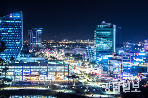 한국전력을 비롯한 주요 에너지 공기업이 집적된 나주 빛가람혁신도시의 야경.