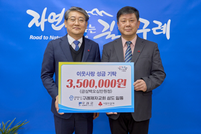 김순호 군수는 “10년째 변함없이 나눔을 실천해 주시는 구례제자교회에 깊이 감사하다”며 “기탁해 주신 성금은 희망2026나눔캠페인을 통해 복지사각지대에 놓인 이웃들에게 따뜻한 온기로 잘 전달하겠다”고 밝혔다.