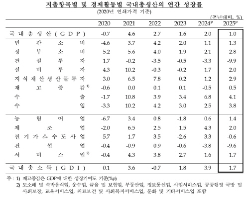 이는 지난해 11월 한국은행이 전망한 성장률인 1.0%에 부합하지만, 2024년 2.0%의 절반 수준을 보였다. 1.8% 안팎으로 추정되는 잠재성장률에도 크게 못 미치는 수준이다.