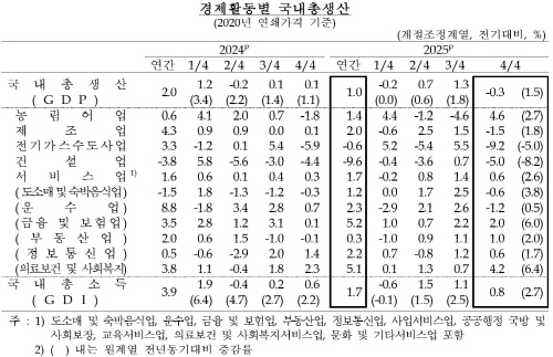 연간 GDP는 성장한 반면, 2025년 4분기 GDP 성장률은 직전 분기보다 0.3% 감소했다.