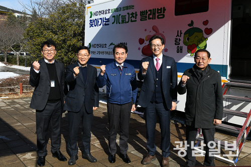 ‘찾아가는 기(氣)찬빨래방’은 지역 취약계층 어르신의 위생 및 건강 증진을 위해 이동세탁 차량이 직접 방문, 무료 세탁 및 통합 복지 서비스를 제공하는 사업이다. HD현대삼호는 이동세탁 차량 구입비로 1억 5000만원을 후원했다.