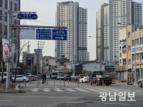 도로안내표지판(중앙동 행정복지센터에서 임동오거리 방향)에는 직진 시 버스터미널, 우회전 시 광주역이 안내됐지만, 좌회전 시 해당 구간을 안내하는 문구가 없는 채 방치돼 있었다.