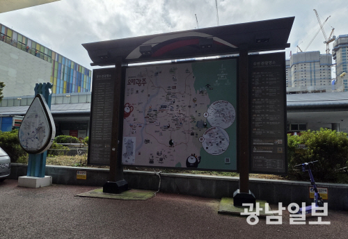 하루 수천 명이 오가는 이곳은 단순 버스 승·하차 시설의 기능뿐만 아니라, 광주신세계, 이마트광주점, 음식점·카페 등이 있어 시민과 관광객의 만남의 장소로 불린다. 택시 승강장 인근에 관광안내를 위한 표지판 2개가 설치돼 있었지만, 내용은 현실과 동떨어져 있었다.