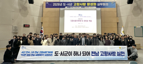 강경문 전남도 고향사랑과장은 “고향사랑기부제와 전남 사랑애 서포터즈는 각각 중요한 정책 수단인 동시에 도와 시군이 함께 운영할 때 효과가 극대화되는 제도”라며 “고향사랑기부제 4년 연속 전국 1위, 전남 사랑애 서포터즈 70만 명 모집 목표 달성을 위해 시군과 힘을 모아 기부 참여 확대와 지역 활력 제고로 이어지도록 하겠다”고 말했다.