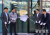 (왼쪽 두번째부터) 양백승 광주북부경찰서장, 박영현 광주은행 문화동지점장, 정용식 광주은행 금융소비자보호부장이 ‘빛고을 보이스피싱 예방 우수 금융기관’ 현판 수여식을 진행하고 있다.