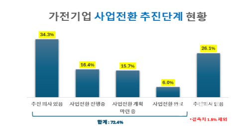 지역 가전기업 10곳 중 7곳이 사업전환에 긍정적인 인식을 보인 것으로 나타났다.