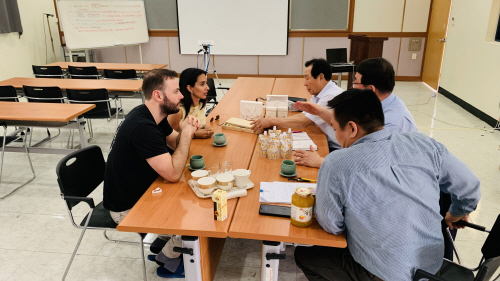 가보팜스는 미국을 비롯해 중국, 베트남, 영국 등 7개국에 벌꿀을 이용한 상품을 수출하고 있다. 현지에서도 천연 과즙에 대한 관심이 높아지면서 큰 호응을 얻으며 지속적으로 수출 판로를 확대해나가고 있다. 사진은 지난해 영국 바이어가 가보팜스 공장을 찾아 미팅을 하는 모습.